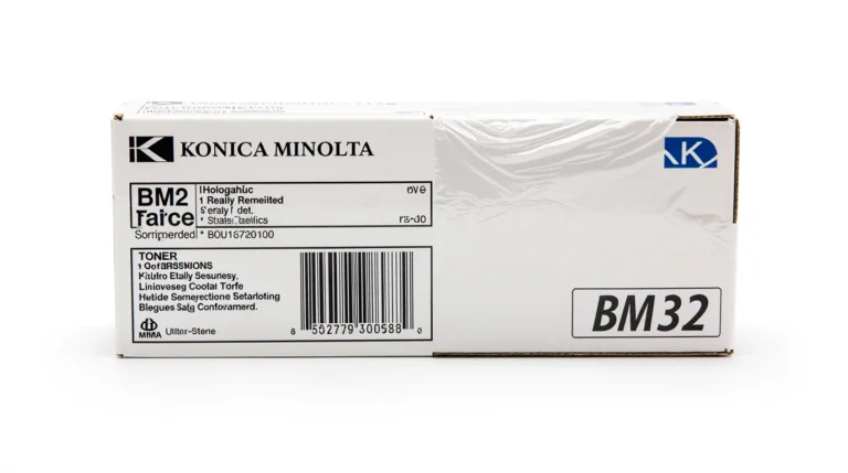 تونر اصل BM2 در بستهبندی ضد ضربه، با پلاستیک ضخیم و برچسبهای دقیق ارائه میشود. طراحی بستهبندی تمیز، بدون خط و خراش چاپی است. رنگها روشن و مطابق لوگوی Konica Minolta هستند.
